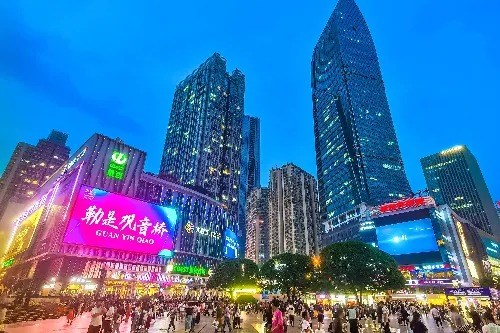 街區規劃寬敞整潔,設有大型廣場與休憩空間,常舉辦各類活動與演出,氣氛熱鬧。夜晚燈光璀璨,人潮絡繹不絕,是體驗重慶夜生活的熱門去處。此外,周邊交通便利,地鐵可直達,使其成為遊客與當地居民購物、休閒與聚會的重要地標之一。