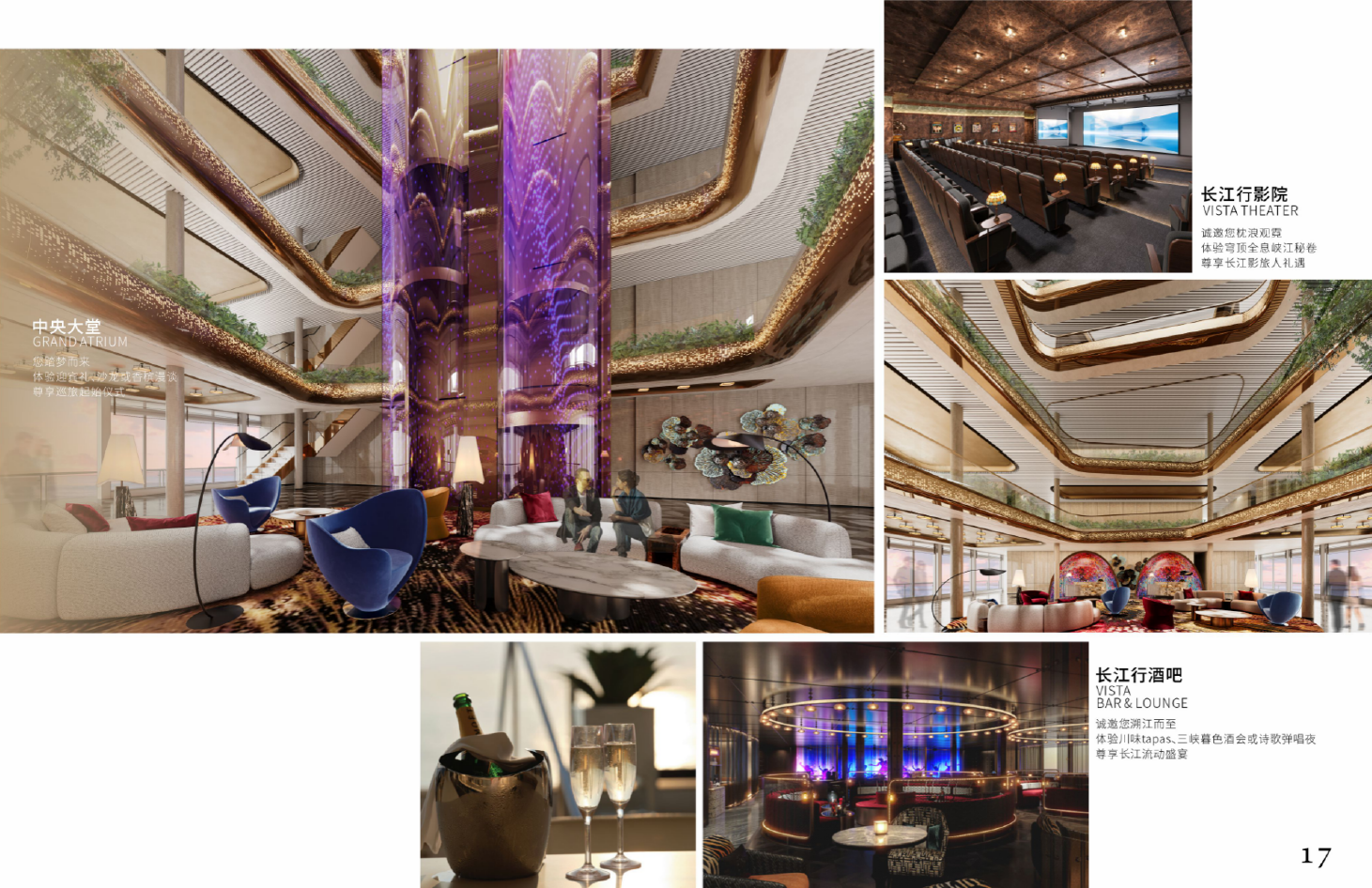 • 靜謐低碳:採用先進隔震降噪技術與環保建材,打造寧靜舒適的低碳遊輪空間。